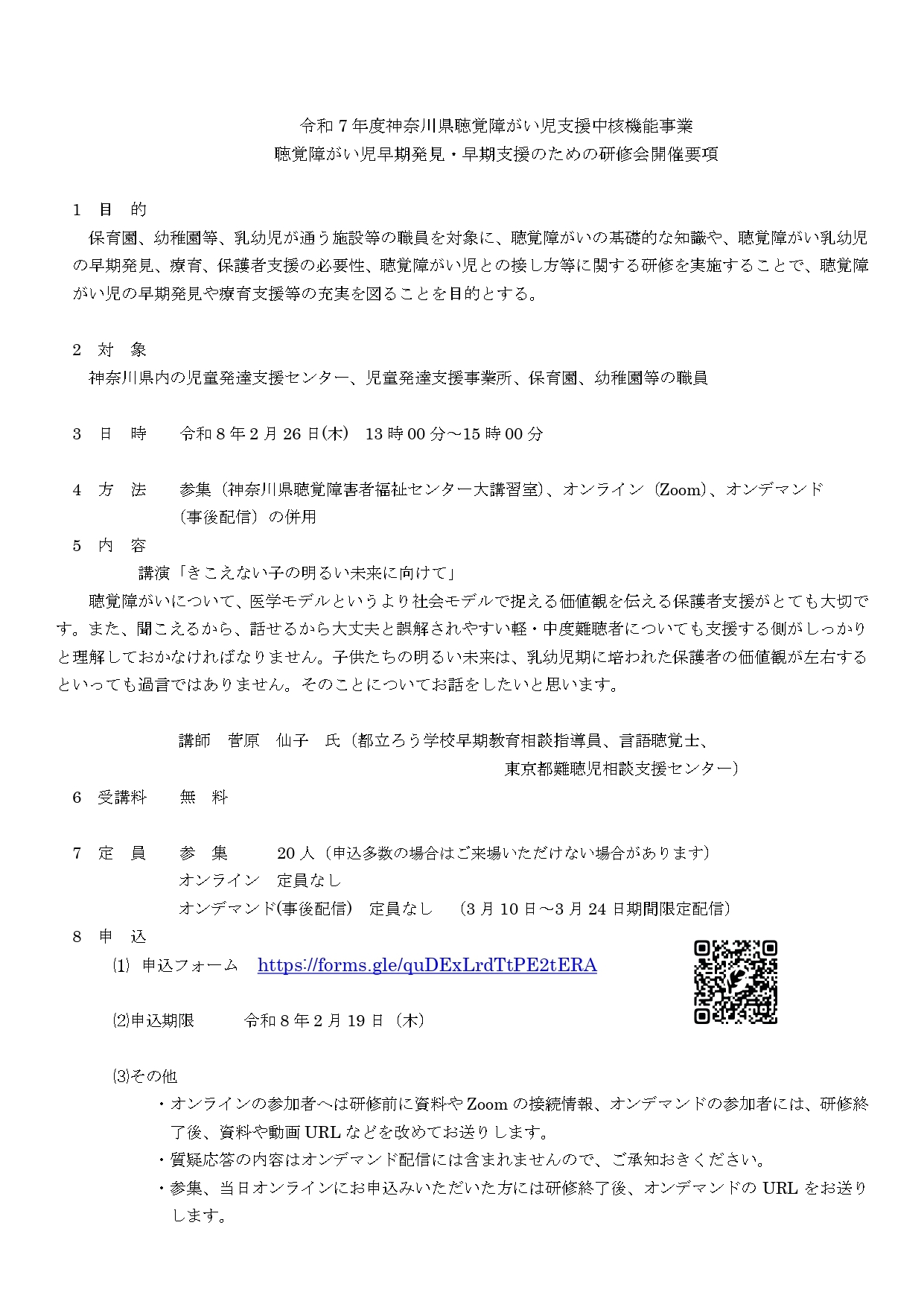 | 方法・会場 | 参集(神奈川県神奈川県聴覚障害者福祉センター大講習室)、オンライン(Zoom)、オンデマンド配信の併用 |